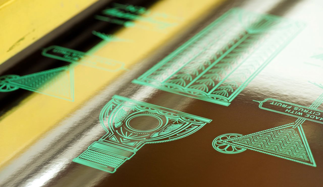 It was clear this design could only work using a Metpol substrate with a duplexed reflective interior, hot foil would have made the cost prohibitively high and cold foil would compromise the quality. The challenge was to get the right type of white contrast against the silver and the metallic green. Prior to the agency setting up the final artwork we created a set of scatterproofs to clarify what the ideal result should be. Once established the artwork was created and this highly complex project ran smoothly and efficiently.